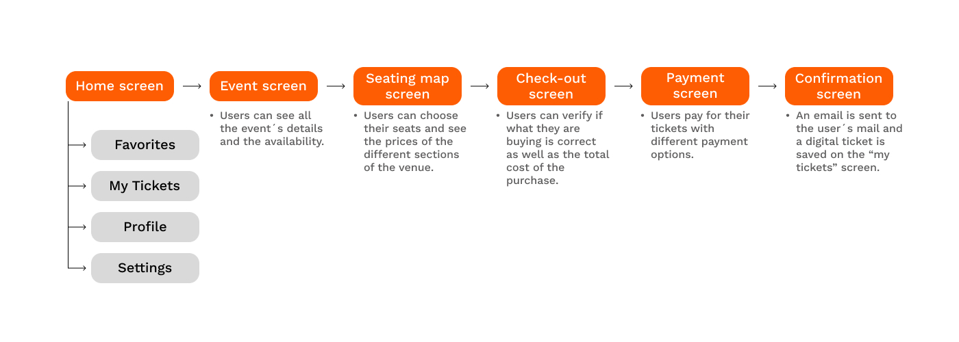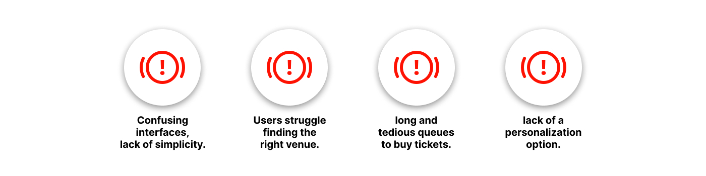 The problem was that users had to go through a lot of steps before actually buying their ticket, which sometimes took too long, making the tickets unavailable before they even got to the payment screen. Another big issue was that most apps would give the user external links or codes to redeem their tickets, and oftentimes, users would have to print their ticket in order to assist the event.