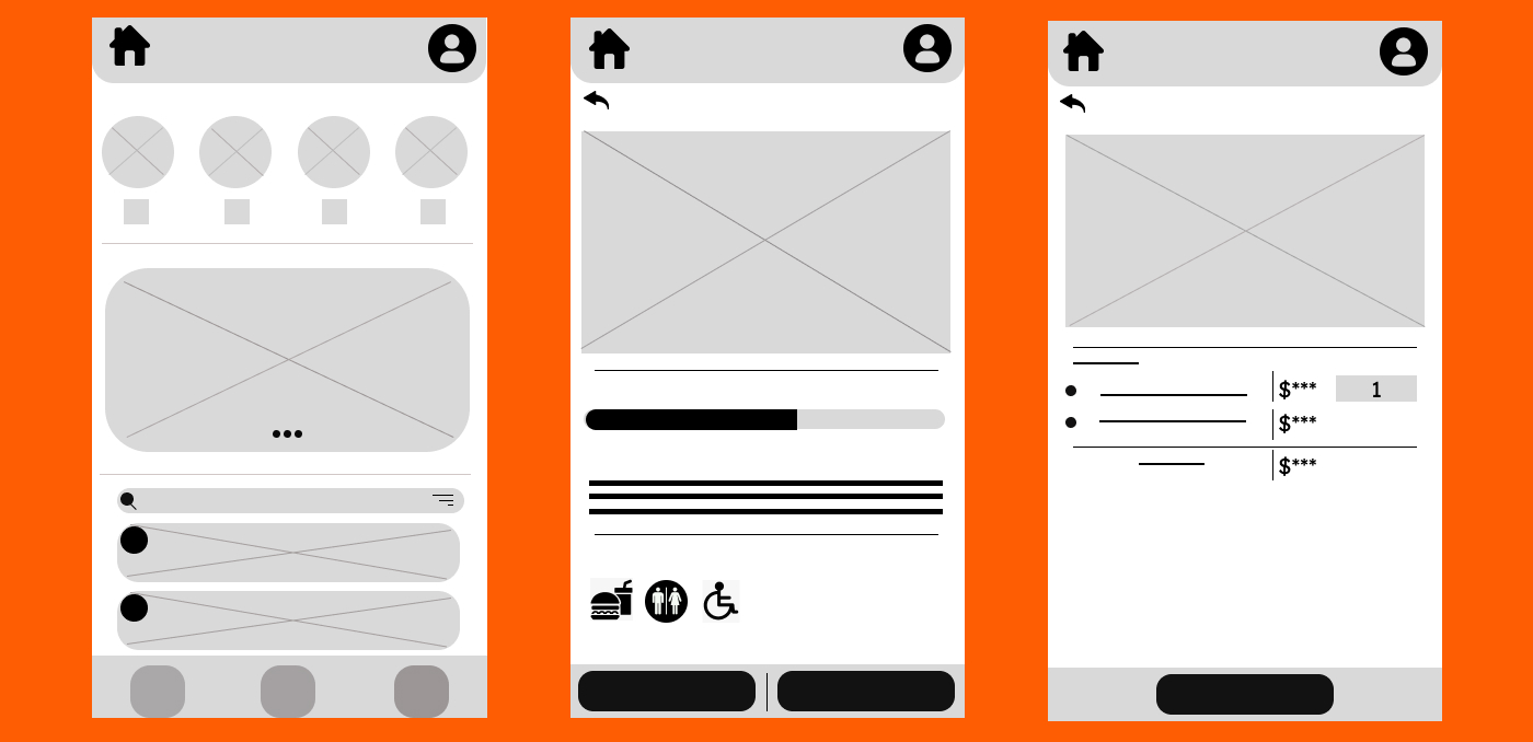 After defining the main constraints, and coming up with a first solution, which consisted of a dedicated platform that focused on making the buying process easier for the users, I went ahead and started creating what the main user flow would look like, the user journey through the app, the Information architecture (IA) of the app and I also started drawing the first rough designs on paper.